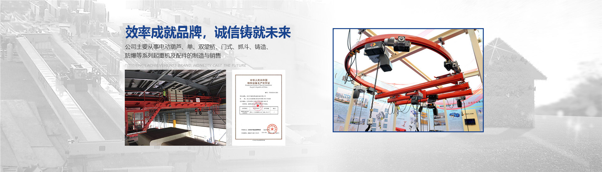 蘇州市德昊源起重機械有限公司主要從事電動葫蘆、單、雙梁橋、門式、抓斗、鑄造、防爆等系列起重機及配件的制造與銷售。擁有江蘇省市場監(jiān)督管理局頒發(fā)的中華人民共和國特種設備生產許可證。